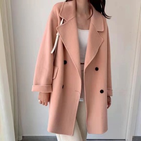 实拍新款粉色双面羊绒大衣女中长款秋冬小个子高端大气...