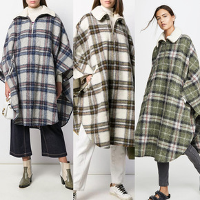 21冬装法式迪丽热巴同款格纹斗篷高领格子毛呢外套中...