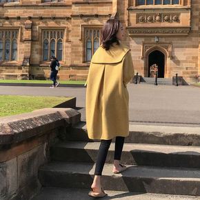 双面羊毛大衣女中长款秋冬韩版宽松休闲纯色毛呢外套现...