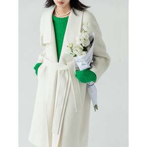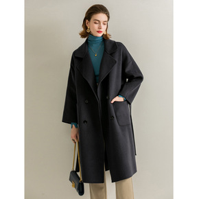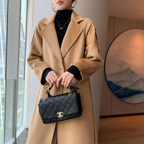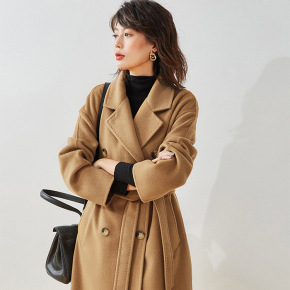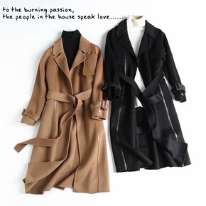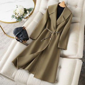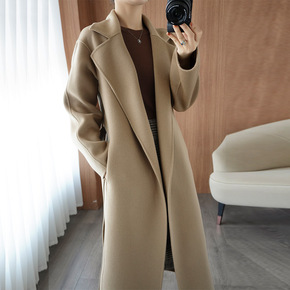 2021秋冬新款羊毛大衣女长款修身双面呢大衣手工缝...
