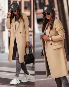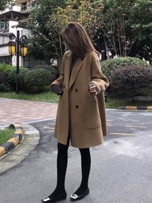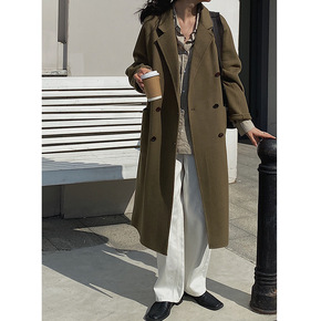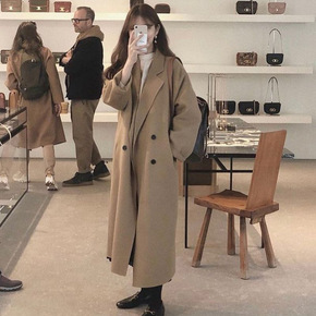 21外套女秋冬宽松茧型显瘦长款欧美休闲双面羊绒毛呢...
