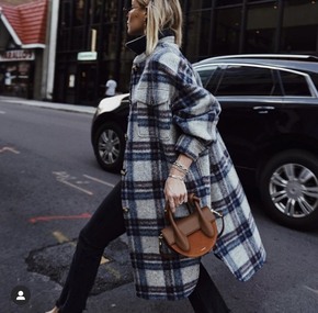 IS 2021秋冬新品彩色格纹大廓形拉绒口袋羊毛毡...