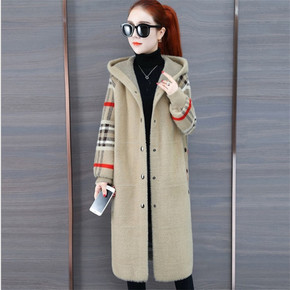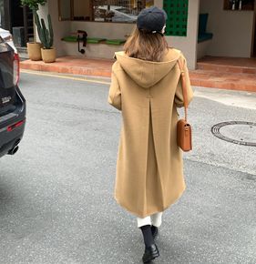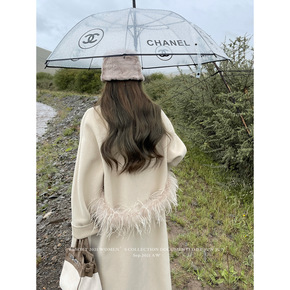 Z家手缝羊毛绒大衣女2021秋冬连帽毛呢大衣女装中...
