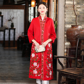深圳品牌女式羊毛呢外套2021秋冬喜庆中式加长款羊...
