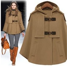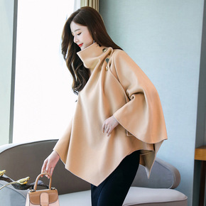 2020秋季女装新款韩版女式毛呢外套纯色中长款斗篷...