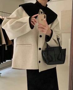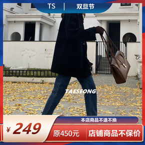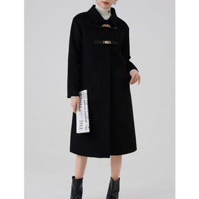2021年冬季新款黑色百搭毛呢外套女复古宽松皮扣中...