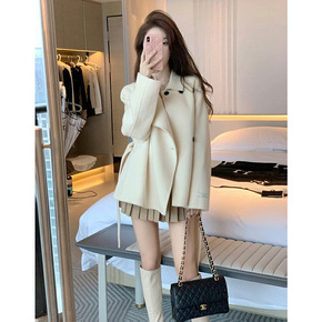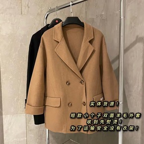 实体货源!小个子经典驼色短款外套2021手工双面羊...