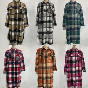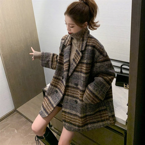 翻领毛呢外套女2021冬季新款韩版格子百搭复古加厚...