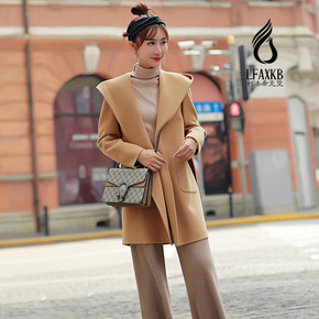 秋冬新款高端大码女装小个子中长款双面毛呢大衣外套女...