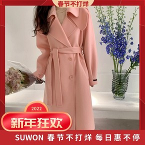 2022年早春新款花瓣领双排扣小众设计长款双面手缝...