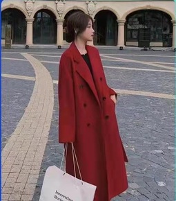 小红书荐双面羊毛呢大衣女 OL通勤过膝加厚翻领白鸭...