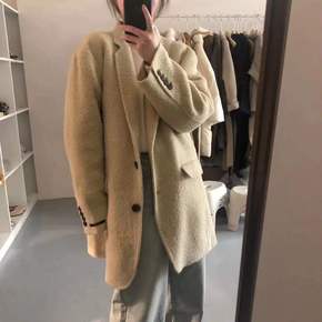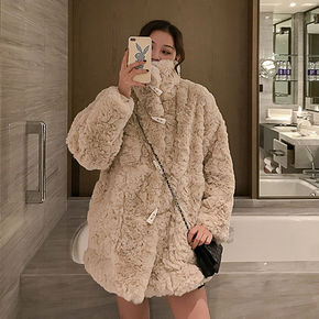 羊羔毛皮草外套女2021秋冬季中长款ins潮款牛角...