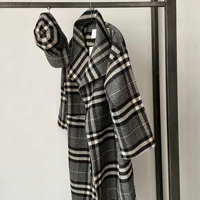 21新色Annecy羊毛翻领格纹双面呢大衣 廓形...