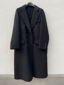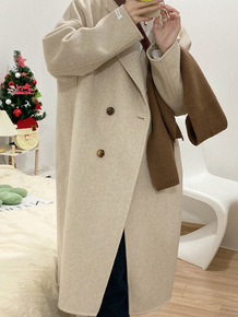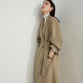 福利修身长款加落肩袖戗驳领无腰带长款双面呢羊毛大衣...