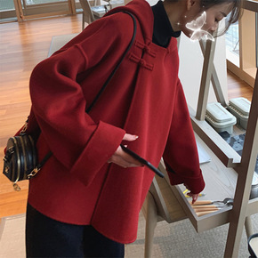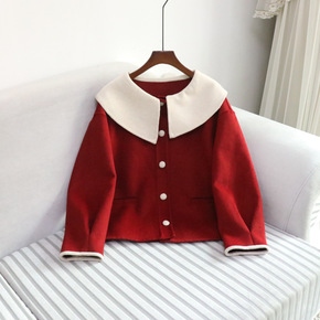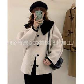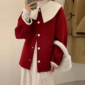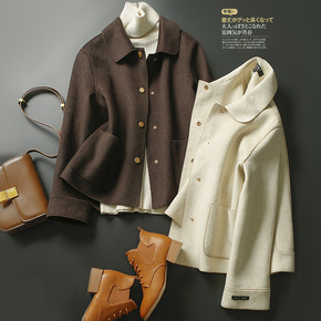 娃娃领双面羊绒大衣女冬季可爱学院风短款小个子宽松羊...