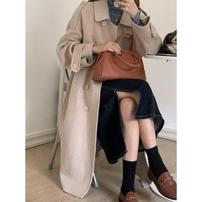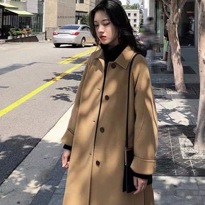 双面呢大衣女中长款2021年新款春秋外套韩版宽松毛...