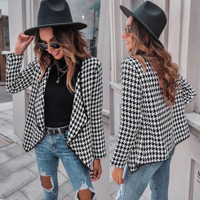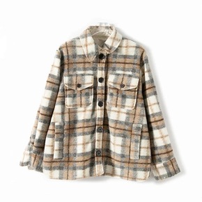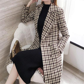 大码夹棉加厚毛呢大衣女格子复古西装外套上衣一件代发...