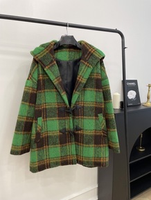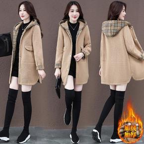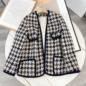 粗花呢大衣女新款2022秋冬韩版时尚修身加棉加厚中...