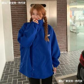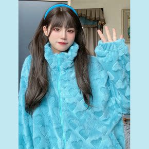 一件代发湖蓝色爱心羊羔毛外套女秋冬百搭小个子机车羊...