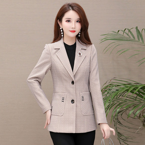 新款妈妈春秋小香风短款西装中年女春装洋气上衣服中老...