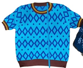 提花短袖针织衫T恤女春夏秋新款清爽海洋蓝波浪打底衫...