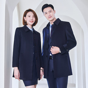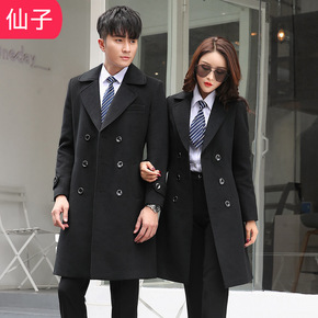 2020冬装新品双排扣夹棉加厚职业装毛呢大衣男女同...