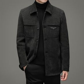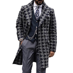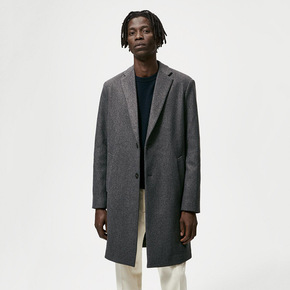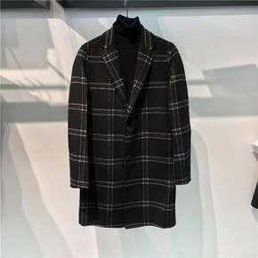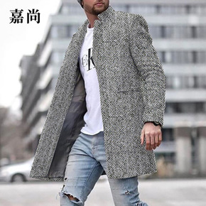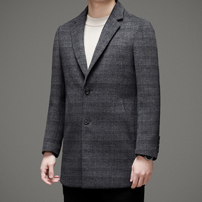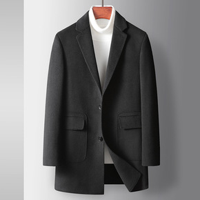 现货男士秋冬羊毛中长款双面呢水波纹大衣外套...
