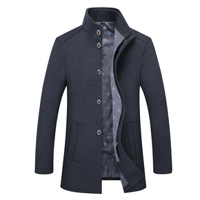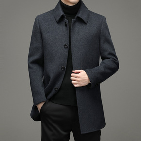 风衣男长款到膝秋冬中老年大衣中长款西服领爸爸加厚毛...