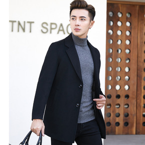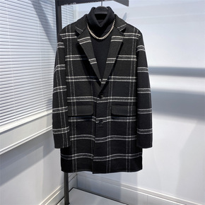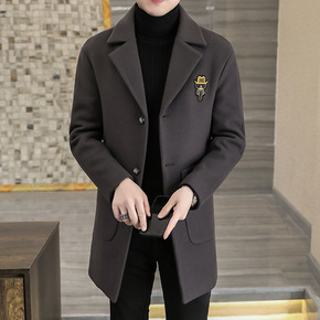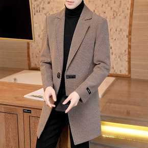 2021秋冬新款男装西装领中长款弹力大衣外套男潮0...