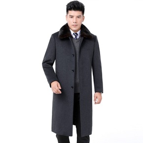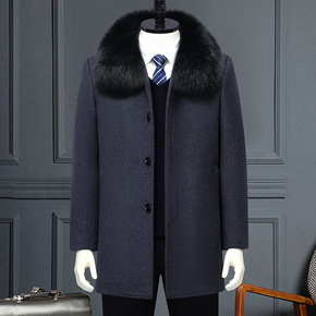 2021冬装爸爸羊绒大衣男中年羊毛呢男式水貂毛领风...