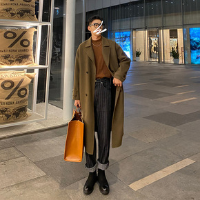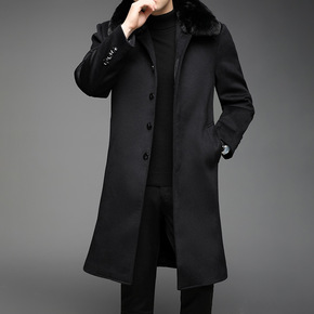 大个子羊毛大衣男过膝长款风衣2021秋冬新款加厚双...
