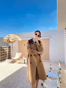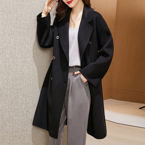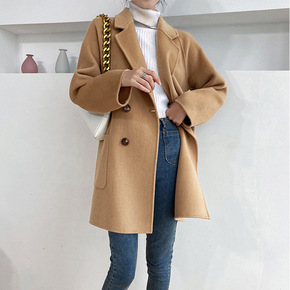 韩版双面羊绒双面呢大衣外套中长款宽松版羊毛双面呢...