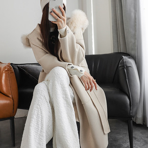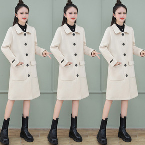 Z121101毛呢外套皮毛一体大衣风衣女2021新...
