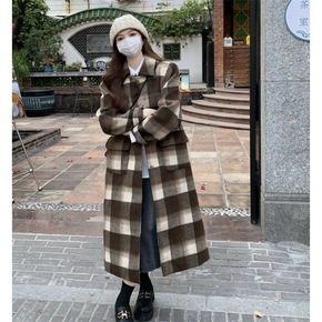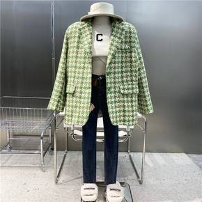 英伦感格纹大衣2021新款冬季编织粗花呢格纹外套加...