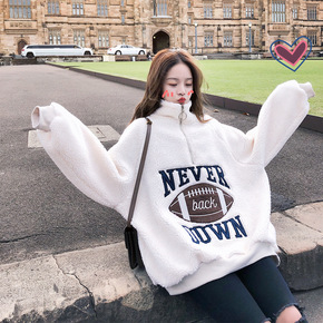 实拍2021冬网红羊羔毛绒卫衣韩版加绒加厚宽松中长...