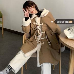 出语4色2021冬季韩国东大门新款牛角扣气质宽松显...