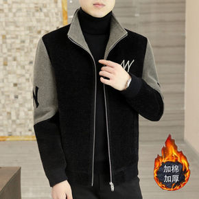 冬季男士新款毛呢外套加绒加厚仿水貂绒时尚大衣冬装外...