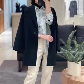 秋冬2021年新款纯手工双面呢羊毛外套短款小个子西...