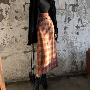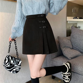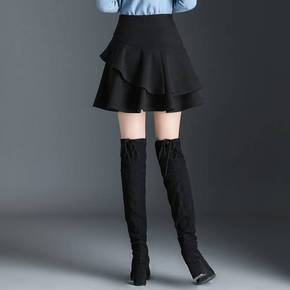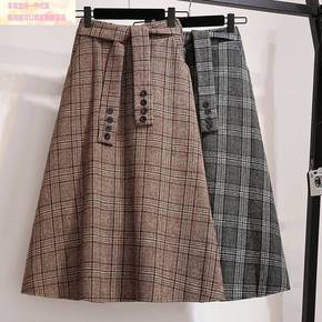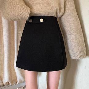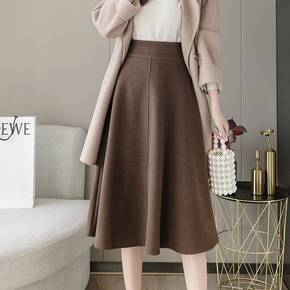 辣妹毛呢秋冬高腰中长款半身裙女秋冬新款高腰大摆字裙...