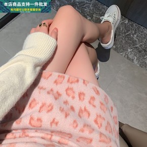 a字短裙2022冬季新款粉色豹纹毛呢半身裙显瘦女秋...