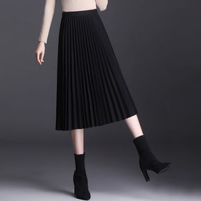 毛呢半身裙女2021新款秋冬A字百褶裙高腰百搭春秋...