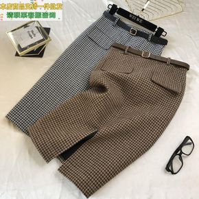 毛呢半身裙法式开叉半身裙女秋冬2021新款复古气质...