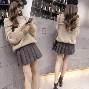 半身裙女新款百褶裙女秋冬毛呢半身裙高腰显瘦百搭字短...