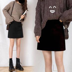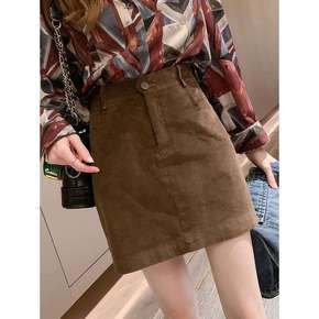 毛呢半身裙短裙女秋冬2021新款复古灯芯绒半身裙高...