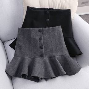 2021新款泡泡裙时尚超火荷叶边毛呢半身裙秋冬女高...