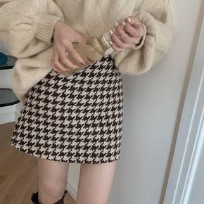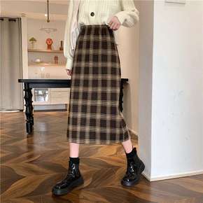 毛呢半身裙2021秋季高腰显瘦中长款包臀裙子气质百...