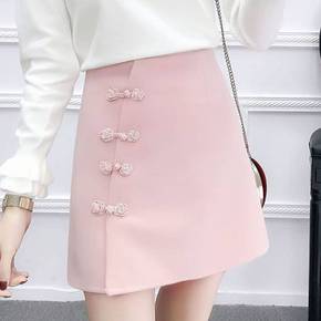 时尚新款半身裙毛呢短裙2021秋冬新款复古单排旗袍...