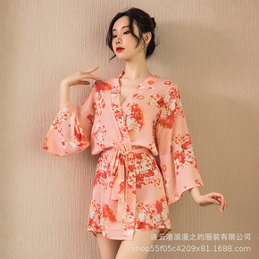 情趣内衣女式性感透明诱惑雪纺睡衣短款浴袍齐臀日式和...