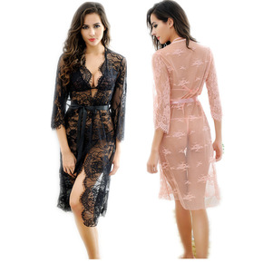 热辣风格睫毛蕾丝性感睡裙套装女式简装透视女式内裤和...