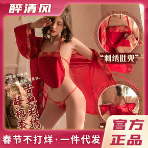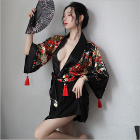 欧美外贸情趣内衣批发 性感红色印花日式和服浴袍三点...